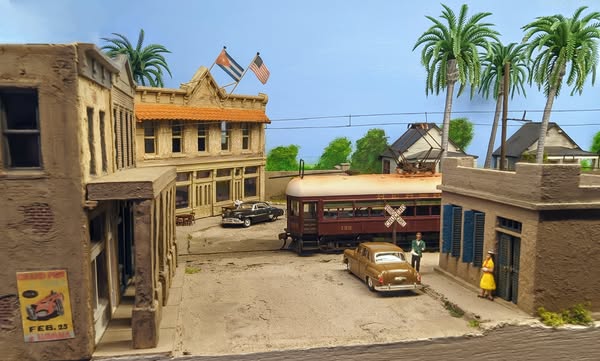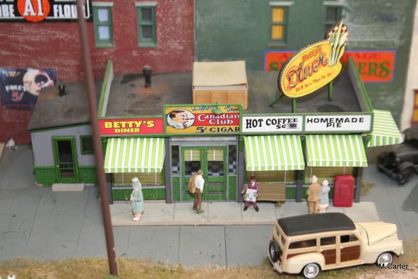 stock are the layout owners copies. The freight stock includes consists of Hershey boxcars, tank cars and cane cars originally made in Cuba. The town extension and