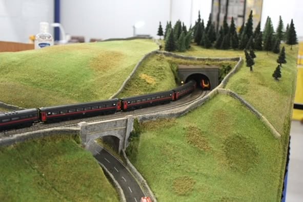 The buildings, tunnels and the viaduct are all from commercially available kits including Faller, Kibri & Peco.