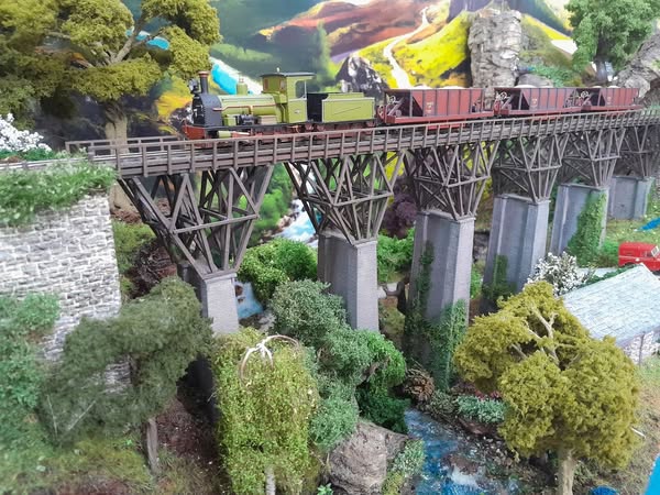 is mainly open Moor land with very few buildings. The bridge to the north of the station and the viaduct are all scratchbuilt. The track plan has been