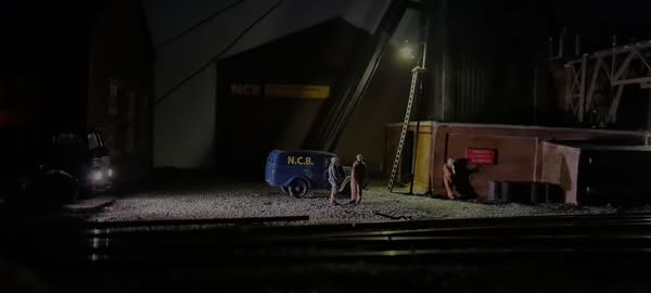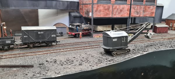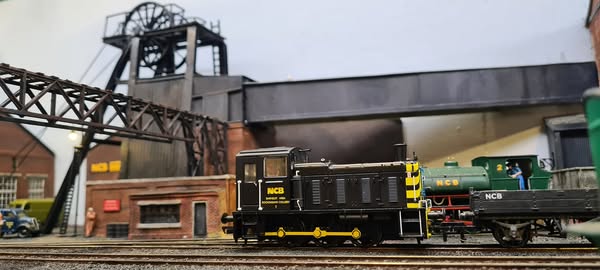 private line connecting the colliery to some imaginary staithes off to the left, just like the real-life Harton Electric Railway. At the back of the layout,