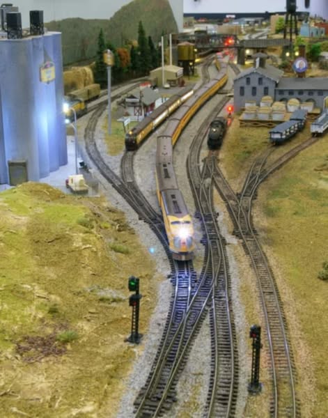 scenery, and depicts a location in the Texas/Arizona region, with trains from 1930 to 2010. The layout is Digitrax DCC radio controlled. |