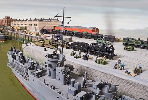 days surrounding the invasion of Normandy. Much of the variety and confusion of the moment are displayed: tanks await loading and mechanised infantry columns search for their