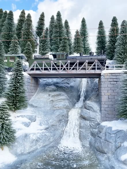 Glacier Express, and the Bernina Express – both of which may be seen on the layout. The striking red of the well-maintained trains against brilliant white snow